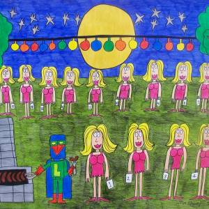 The Barbie Queue Laser Beak Man by Tim Sharp